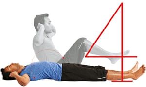 This takes the traditional stomach crunch up a notch. “It makes you contract your abs throughout, while forcing you to bring in the obliques [the abdominal muscles that run down your side] to control the movement,” says Matt. “Focus on getting the position absolutely right and using your stomach muscles rather than letting your back to bow.”